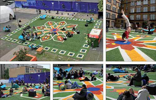 “你有看過會飛的魔毯嗎?” “有沒有聽錯,這不是在《一千零一夜》里才會出現的童話場景嗎?” “別大驚小怪了,現在真的有人把飛天魔毯設計出來了!” “那…它要怎么飛呢?” “怎么飛不是重點,厲害的是,它可是全世界唯一一個可以移動的飛行公園,這夠神奇了吧!” 會飛翔的移動式公園 飛天草毯基本上是一片巨型的人工草坪,以充滿東方風情的波斯圖紋設計而成。共有18×32米和22×58米兩種尺寸規格,雖然面積龐大,但可以任意拆解、組裝,造就便利的運輸性。自2009年設計完成之后,飛天草毯已創下3個國家及8座城市的飛行紀錄,它曾到阿姆斯特丹參加Kunstvlaai藝術節,也待過馬德里和柏林等歐洲大城,作為裝置展示以及供人們活動玩耍的公共空間。飛天草毯在今年還會陸續前往德國、匈牙利和土耳其等各國旅游,為當地城市注入綠意盎然的休閑氣息,打造活力四溢的新公園生活。