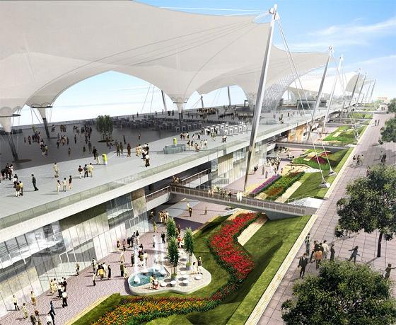 中國風景園林網訊 2010年上海世博會舉行在即,而作為世博會后唯一會被永久保留的場館,"一軸四館"則成為整個世博園區最大的亮點。所謂"一軸四館"就是指世博軸、中國國家館、世博會主題館、世博中心和世博演藝中心等五個標志性的永久建筑。 世博軸――串聯世博園區無限精彩