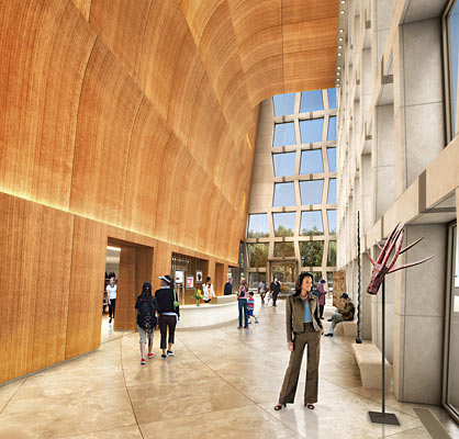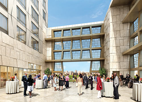 新的“非洲藝術博物館”由“羅伯特-斯特恩建筑事務所”(Robert A.M. Stern Architects)設計。這個博物館的75,000平方英尺的、陳列室、休息室、“特別展出廳”(event space)、咖啡店、劇院、商店、辦公室、圖書館和教育中心,占用了一幢19層的住宅樓的低層。 羅伯特-斯特恩說,最大的設計挑戰之一,是確保這個博物館與其余的建筑物完全不同。建筑師使用預制的混凝土板作為博物館的外表面,構成了博物館的梯形窗戶。斯特恩說:“這是用現代的抽象的方式融合非洲藝術。”