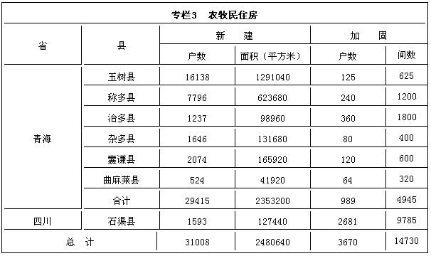 《玉樹地震災后恢復重建總體規劃》(全文)