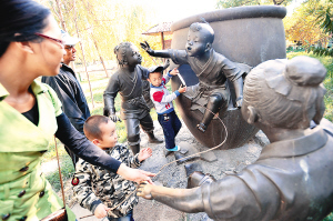 圖3為“司馬光砸缸”主題銅塑