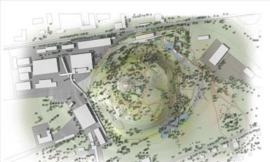 ![]() ![]() ![]() ![]() FoRM事務所和AID事務所受聘改造烏克蘭頓涅茨克(Donetsk)一個原工業場地。頓涅茨克是烏克蘭一座重要的煤炭和鋼鐵工業中心。改造項目的一期工程將建造一座實驗性的藝術中心,設置在一個新的圓形公園里,并將一座45米高的礦渣場也一并改造了。工程主要的目標是對過去的工業景觀進行社會的、經濟的和生態的改造,形成一個文化藝術的聚集地。 這個名為“IZOLYATSIA”的項目將通過仔細調查后進行創意設計,制造富有活力的環境,促進文化行業的交融和對話。一些廢棄的場地將回收后變成“綠色”場地,成為新的增長點。礦渣場“Terrikon” 也將成為一個新的綠色公共空間,并為將來其他建筑的建設奠定了基礎。