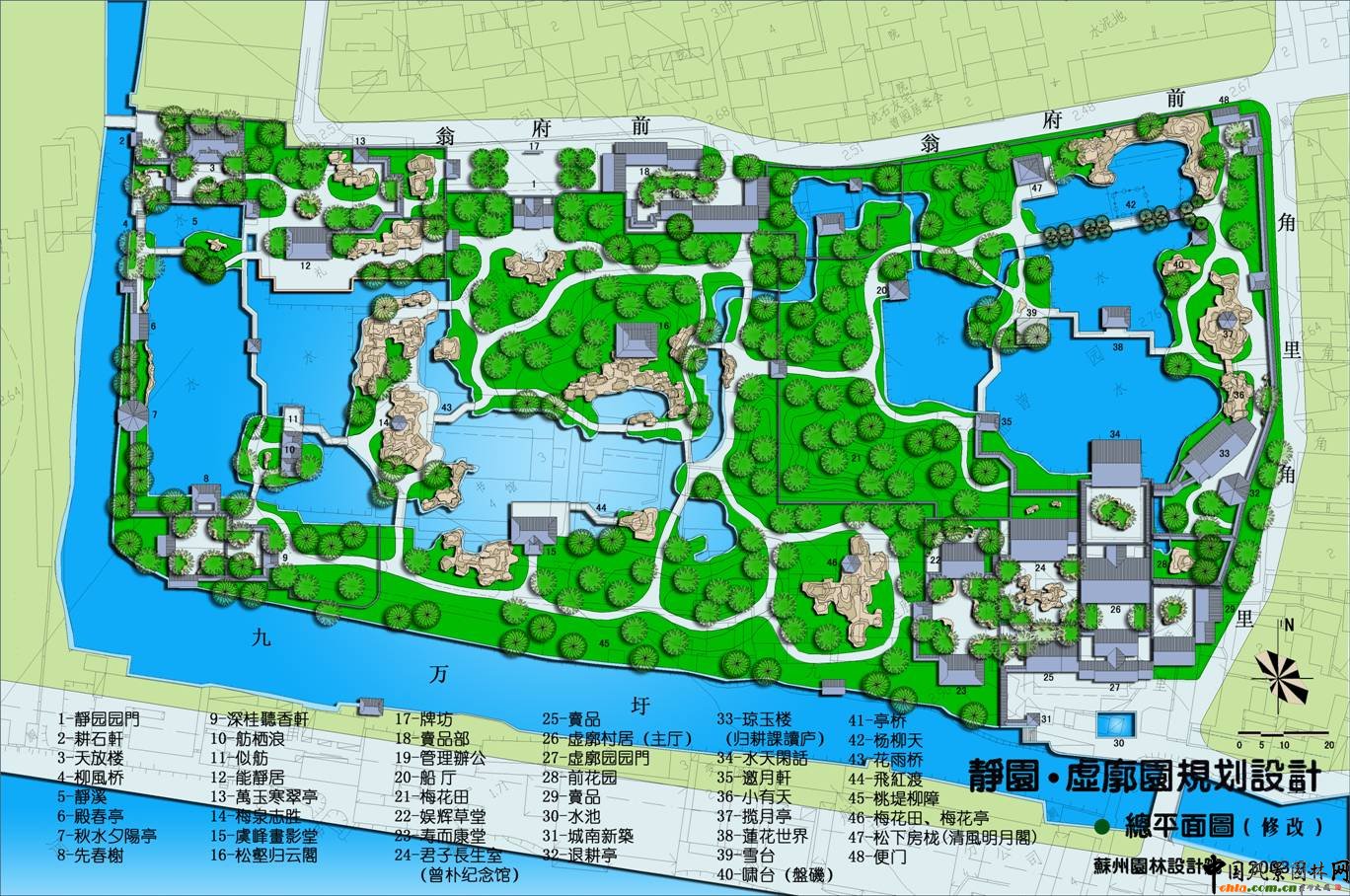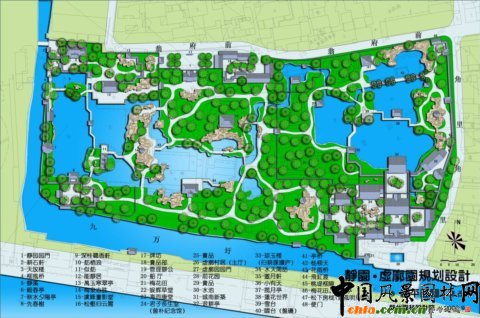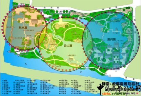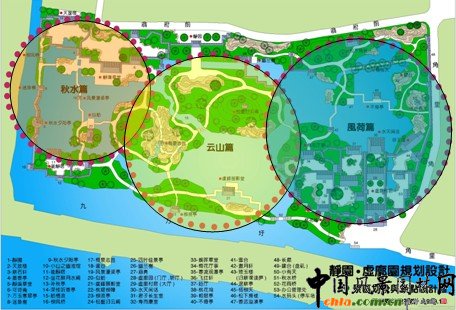 ![]() 規劃鳥瞰 意境創作 秋水篇:靜園構園之始,"種竹養魚,荷香數里"。游魚觀賞應為靜園特色之一。一泓清池,板橋臥波的布局,讓人聯想起《莊子·秋水》篇中描寫濠梁觀魚的故事。這應是符合原創作意境的。 風荷篇:集中反映虛廓園凌波翠蓋,淡香清遠的荷蓮特色景觀及圣潔的品格。 云山篇:既是中部山水景觀創意的描寫,更是對虞峰千頃,滿湖云山景觀的概括。 ![]() 傳統園林規劃,首要的是山水創作與布局 "園林之勝,唯是山與水二物"。山水對傳統園林規劃的重要性,大概有以下幾個方面的緣由: 1.山水是大自然中自然風景資源中的主要內容。中國傳統園林的本質是自然山水空間的藝術描寫。"縮千里江山于方寸",在諸多景觀元素中,山水景觀是園林的核心與主體。有了山水布局,構起一園之框架,其他景觀元素就能得以拓展。 2.山水景觀,山有峰、巒、巖、崖、洞、壑、灘、磯之分;水有湖、塘、池、河、溪、澗、泉、潭之別,可以經營、創作出豐富多彩、各具個性的景觀形象。 3.山水之間,山具有雄渾、蒼勁、壯觀之陽剛的特質,是園林空間的骨架和支撐。水以明澈、晶瑩、委宛、靈動的柔美品格見長,是園林中最富動感、充滿勃勃生機的景觀形象。山水剛柔相濟,互相融合補充,"山得水而活","水得山而媚",各自因對方凸現出自身的風景價值。山水相映的景觀,才是生動和精彩之筆。 4.山水景觀傳承著豐富的歷史文化信息,無論是層巒疊障、奇峰幽谷,還是曲溪深澗、懸潭飛瀑,所展現的深藏若虛的深邃幽遠之境中,蘊藏著眾多的人文歷史、神話傳說和宗教崇拜,體現了一種"自然之道"與"回歸自然"的"天人合一"神圣理念。 江南文人山水園林其魅力在于景觀設計和意境創作。 影響靜園虛廓園山水經營的有幾個方面: 1.藍田輞川: 為唐代山水田園詩及南宗水墨畫代表人物王維之別業,位于終南山下輞川山谷。輞川對造園藝術影響極為深遠,使得后人造園紛紛學輞川。典型的例子,要數明萬歷年間監察史錢岱在常熟所造的"小輞川"。據園記記載,"此園絕類唐代詩人王維藍田輞川", 雖然小輞川已不復存在,但靜園、虛廓園卻是在小輞川的園址上經營發展起來的,在園中至今保存著小輞川中的"梅泉志勝"假山(靜園)和竹里館(虛廓園)遺存。在它們之間可能存在著某種聯系。靜園、虛廓園山水布局簡潔,不太曲折,與蘇州園林中小型園林明顯不同。 2.洞天福地,蓬島瑤池 虛廓園東部有假山,題名"小有天"。這個名稱源于道家的洞天福地,為仙人之居(地仙),它包括海上十洲三島和陸地的洞天福地。洞天福地又有十大洞天、三十六小洞天和七十二福地。小有天,據《太平御覽》卷四十說"王屋山有小天,號曰小有天,周迴一萬里,三十六洞天之第一焉。" 三島,即是蓬萊、方丈、瀛洲。蓬島瑤池,這是十分古老又流傳極其廣泛的話題,包含了海島神山和昆侖瑤池兩個神話體系,對中國園林,尤其是皇家園林的發展,有著極其深刻的影響。瑤池,傳說在昆侖山頂,周穆王曾在此宴請西王母。后來,兩個神話被結合在一起,變成一種向往和追求的理想,作為造園塑造景觀的題材。"一池三山"模式成為后世宮苑山池之筑的一個范例。 3.滄浪之水 小有天假山向北延伸,有嘯臺、盤磯和"虛廓子濯足處"。這是一則與"滄浪之水"相關連的話題。"滄浪之水清兮,可以濯我纓;滄浪之水濁兮,可以濯我足。"是一首有名的滄浪之歌,表示出清濁分明的慨嘆。以"滄浪"為題材來營造園林山水景觀的,在園林中十分常見。如拙政園、怡園、半野園、澄碧山莊(常熟)均有"小滄浪"之景;網師園水邊小筑題額"濯纓水閣";可園有屋三楹,取名"濯纓處"等等。其中最為著名的是滄浪亭。該園"構亭北碕,……前竹后水,水之陽又竹,無窮極",為北宋文學家蘇舜欽按照《楚辭o漁父》的意境構筑。《楚辭o漁父》說的是滄浪漁父用《滄浪之歌》勸說屈原隨世沉浮,超脫世俗的故事。蘇舜欽因無罪遭貶,借"滄浪"的涵意渲泄內心的憤懣,"跡與豺狼遠,心隨魚鳥閑","高軒面曲水,修竹慰愁顏",表示退居山林的心境。從中可以知道,"滄浪之水"包含著退隱避世、超塵脫凡、滌穢洗襟、潔身自好的三層意思。這也正是園林景觀中的涵意。 4.濠濮之想與魚鳥之親 趙烈文靜園的前身為吳俊基的"水壺園",又名"水吾園",以種竹養魚、荷香數里聞名遠近。以魚作為觀賞對象,以得濠濮之想和魚島之親,在江南園林中此風亦甚盛之。濠濮間想,出自《莊子o秋水》篇。留園中部池中"小蓬萊"島上有濠濮亭,題額"林幽泉勝,禽魚自親,如在濠上,如臨濮濱。昔人謂會心處便自有濠濮間想,是也。"其意來源于《世說新語o言語》篇:簡文帝入華林園,顧謂左右曰:"會心處不必在遠,翳然林水,便自有淳,濮間想也。覺鳥獸自來親人。" "行到觀魚處,澄澄洗我心",園林景觀"濠濮"之情,有知魚之樂的忘我境界;有醉心山之林,情怡丘壑,對身心自由的追求;有山水魚鳥相親,人與自然的和諧統一。這就是"濠濮間想"的思想內涵。 5.世外桃源 楊云史有虛廓園《壽而康室廊下通桃花塢》一文,反映出桃花塢應是虛廓園中重要景觀之一。這個命題,源于東晉田園詩人陶潛設計的一個他心目中追求平等、自由的理想社會。他謳歌自然風景的山水詩,達到了景中有情,情中有景,情景交融的境界。他的美學思想流風所及影響巨大而深遠。直至明清還有不少園林是取他的詩文之意來命名的。至于園