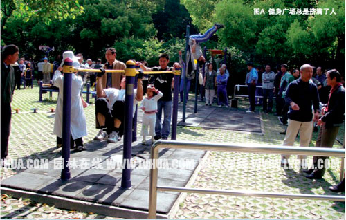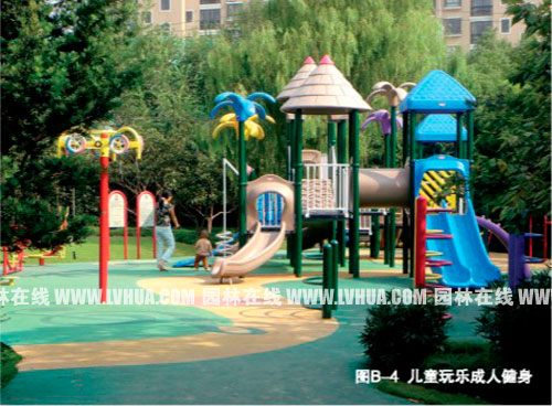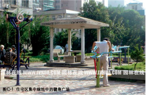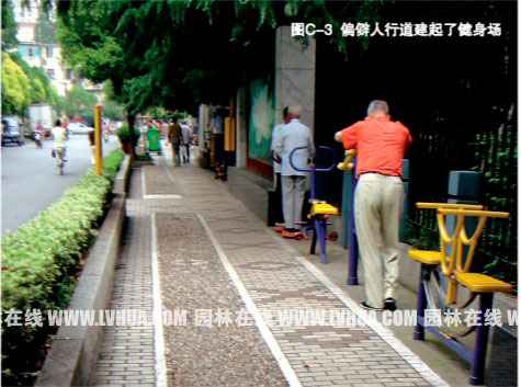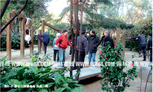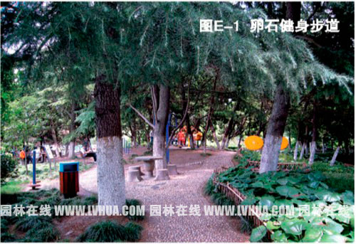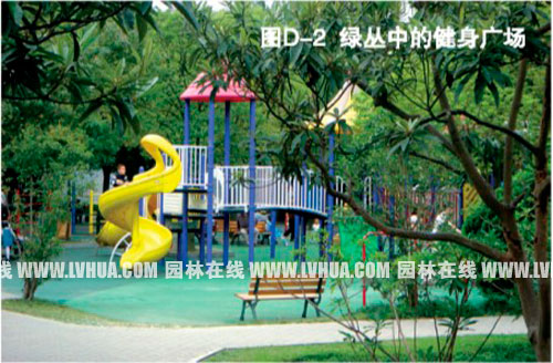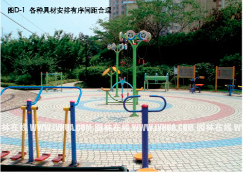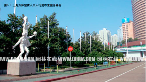 一、健身廣場的形成 社會的快速發展,健身的內容已逐步深入人心。加上老年化社會的形成.康健小區達標的要求,健身在新舊居住區、公園、學校、街道綠地甚至可利用的邊角地塊等地方,普遍成為一項老百姓喜聞樂見.老少咸宜的重要生活內容。因而產生了“健身廣場”這樣一種新型的項目和新的概念。但是在居住區環境景觀設中,對此認識不足,有的僅在規劃中表示地位,有的甚至忽略其存在,留造待物業或居委找生產商見縫插針自行建,很少有對“健身廣場”進行詳細選型排列布置的。本文意在引起對這方面的關心注意。(圖A) 二、健身廣場的類型 (一)健身類具材 市售各種成型的具材,多數為鋼木材制品,價廉物美,如太空漫步、腹背牽引器等,也包含健身道路—一現在是健身廣場的主要內容。 (圖B-l) 。ǘ┻\動類具材 各種小型的常規定型具材,如單杠雙杠,吊環、羽毛球乒乓球場等,主要服務對象為中青年,在有較大場地的公園綠地可以見到這種布置。 (圖B-2) 。ㄈ┩婢哳惥卟 各種成組的小型多樣具材,也包含沙坑等設施。主耍服務對象為青少年,多數公園可以見到這種設施。 (圖B-3) 。ㄋ)這三項內容從活動的“動靜”上是一致的,但服務對象是不同的,有時單獨設立,有時結合在一起布置。 (圖B-4) 三、健身廣場的選地 。ㄒ唬┚幼^內的健身廣場經常布置在集中綠地、幢間綠地上,與住戶有適當距離,避免對居民的影響。一般每個居住區有多于一個健身廣場,用于安放健身類或玩具類具材。 (圖C-l) 。ǘ┕珗@內的健身廣場 往往選擇在靠近入口處,形成獨立的空間,有時健身具材是有很大規模,有時玩具具材擴展為娛樂運動,如攀巖等。(圖C-2) (三)街道綠地的健身廣場 應考慮地形,充分利用每個邊角布置,不影響其他活動,多數為小型多樣的健身類具材。 (圖C-3) 四、健身廣場的規劃 。ㄒ)各類具材選型妥當、間距合理,有規律地排列,互不影響使用。 (圖D-1) 。ǘ)有良好的活動環境,最好大部分具材處在樹蔭之下。 (圖D-2) (三)有防滑.排水的舒適鋪裝,各項附屬設施都符合安全要求。 (圖D-3) 。ㄋ)除了健身活動,最好還有休息閑談的場所、座椅.照明。 (圖D-4) 。ㄎ)一般具材設有使用說明銘牌,規模較大的完整揚地設管理房。 (圖D-5) 五、常用健身具材的尺寸和安全距離 。ㄒ)健身步道(圖E-l) ●單向活動的健身步道寬1.2 - 0.9米,平面必須圈狀閉合;考慮活動人多時的雙向健身步道寬1.5 - 1.2米。 ●健身步道具足底按摩的作用,卵石最好直立粘貼但大小相當表面平整。 ●卵石道邊緣最好有明顯觸感,以適盲人或閉眼活動。 ●所選卵石可作彩色拼花圖案,常用斷面為素砼80-100毫米下碎石夯實。 常用健身具材 太空漫步等二十項。 健身具材的安全間距 ●常用健身具材尺寸各廠生產略有不同,以實際尺寸為準。 ●在使用人上下的方向建議至少留0.5米距離,因此健身具材之間至少距為1米,一方面是考慮安全,一方面是考慮穿行,再留有適當的余地。 ●在使用人活動的方向建議至少留0.9 -1.8米距離。按我國人體平均雙手左右平攤長為1.7米,單手向前長為0.85米這個距離應是足夠的。 ●在使用人不活動的方向建議至少留0.3 - 0.5米距離。有的健身具材活動時向前或后外伸,應以最大范圍尺寸為準。