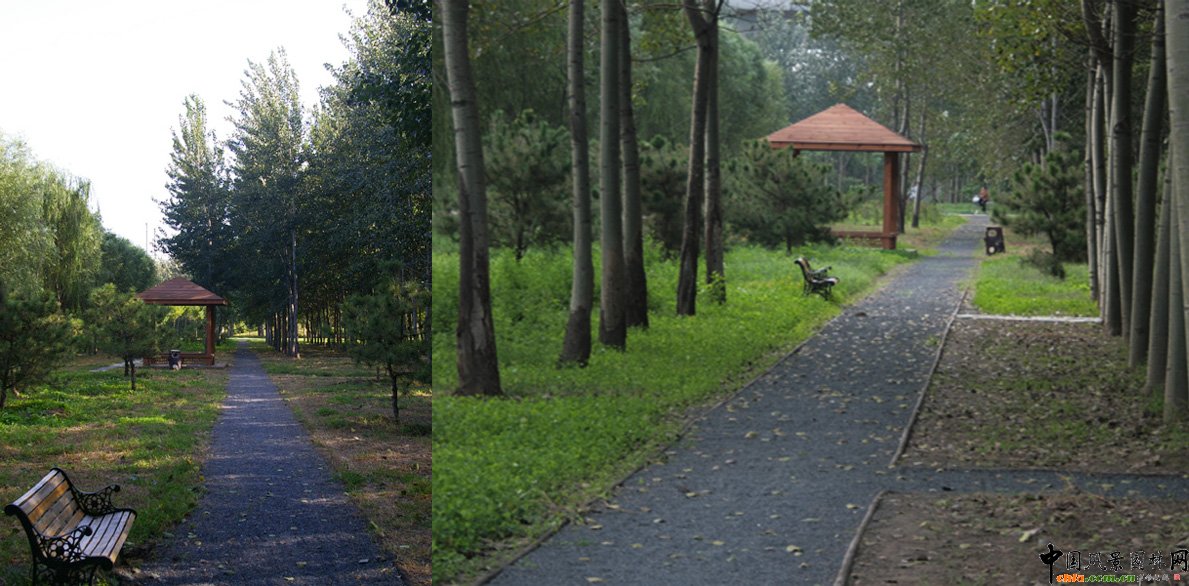 3、“郊野自然”生境的營造方法與實踐 節(jié)約、生態(tài)、共生的理念要貫徹于整個設(shè)計始終。統(tǒng)籌兼顧、因地制宜、以人為本是郊野公園方案初期直至現(xiàn)場后期貫穿各個工作階段的基本原則。我們從如下幾個方面來共同探討有關(guān)郊野自然的營造: 3.1郊野意境的環(huán)境營造應(yīng)該體現(xiàn)審美觀念的轉(zhuǎn)變 通過我們對第二自然的再認(rèn)識,脫胎于第三自然的園林設(shè)計在觸及郊野公園項目之初,就要樹立有別于以往城市公園的審美標(biāo)準(zhǔn)。明確我們?yōu)榻K端使用人群所打造親切、真實、乃至生動的郊野意境為目的。在設(shè)計與建設(shè)中有效把持景觀節(jié)奏的變化,它有別于常規(guī)城市公園景觀的突出特征就是環(huán)境包容力與景觀松弛度。 3.2郊野意境的環(huán)境營造更能體現(xiàn)出多學(xué)科的綜合 郊野自然景觀背后要求設(shè)計師將生態(tài)環(huán)境科學(xué)知識與風(fēng)景園林造園知識相疊加,體現(xiàn)科學(xué)與人文、技術(shù)與藝術(shù)的充分結(jié)合。以天元公園原有魚池改造后的野態(tài)水景池塘為例(圖1) ![]() 改造前 改造后(攝于天元公園) ![]() 圖1 由原有硬質(zhì)駁岸魚池改造而成郊野池塘 在設(shè)計師與相關(guān)生態(tài)工程技術(shù)人員的專業(yè)配合,通過池塘生態(tài)池底改造與中水給水循環(huán)利用,解決了池塘防水與給水;通過園林水景植物針對性配置與微生物投放,完成了野態(tài)水景景觀與水環(huán)境的凈化處理。從而,通過自然郊野的景觀塑造滿足了人們對自然郊野親近感受的心理需求與相關(guān)活動組織,同時也完成了對其周邊場所功能的轉(zhuǎn)變與升級。 3.3郊野自然生境的營造需要建立樸野回歸的種植設(shè)計觀念 我們在天元公園、老君堂公園等項目的種植設(shè)計中就“純粹與斑斕”的郊野意境景觀營造意向與構(gòu)想展開實踐。對現(xiàn)狀魚塘、松柏林圃等基址的改造旨在表明對這一主張的探索與實踐。 3.3.1純粹——對現(xiàn)狀生態(tài)林的空間結(jié)構(gòu)改造與全新植被空間的打造。 單一的植被結(jié)構(gòu)雖然缺少傳統(tǒng)園林造景意義上的層次豐富、高低錯落,但其卻充滿了足夠的景深和空間序列感。從因地制宜的角度,我們最大化尊重原基址主干樹種的結(jié)構(gòu)特征,力圖把握好“第二類自然”里所包含的純粹意境與樸素之美。 ![]() 圖4 利用場地現(xiàn)狀改造而成的景觀(攝于天元公園) ![]() 圖5 郊野里的幽靜與深遠(攝于老君堂公園與天元公園) “純粹”包含著“第二自然”里所孕育的量感美和韻律美。改造現(xiàn)狀生態(tài)林所運用的“減法”設(shè)計手段其結(jié)果,是在最大化“第二自然”本身所擁有的真實、質(zhì)樸的美。 ![]() 改造前 改造后(攝于天元公園) 圖6 改造后的松林空間更具空間美與量感美 3.3.2斑斕——觀賞草與野生花卉組合在郊野類型公園中的運用 觀賞草近年來以其適應(yīng)性廣、抗逆性強和養(yǎng)護成本較低等特點,在節(jié)約型園林建設(shè)中得到大力推廣,同時伴隨人們審美趨向的日漸回歸,觀賞草在園林中得到了更為廣泛的應(yīng)用和青睞。觀賞草在北京地區(qū)園林的應(yīng)用主要分為地被覆蓋型、孤植點綴型、片植叢植型、鑲邊屏障型幾類。 以中下層地被類植物配置來塑造郊野質(zhì)感是突出這類綠地自然、野性景觀特征的有效途徑。各種狼尾草、柳枝稷、日本亂子草、求米草等種植可以充分展示郊野類型特征。 ![]() 圖7 充滿郊野質(zhì)感與觸感的觀賞草應(yīng)用(攝于天元公園) 野生花卉組合的應(yīng)用賦予了大地斑斕的色彩和彌漫空氣中的郊野味道。其花期長,適應(yīng)性強、管理粗放郊野氛圍營造濃郁的特點值得在“郊野自然生境”的景觀營造實踐中廣泛應(yīng)用與推廣。 ![]() 圖8 路緣、場地邊的色彩(攝于天元公園、老君堂公園) ![]() 圖9 林下的斑斕色彩(攝于老君堂公園) 3.4郊野意境的環(huán)境營造需要表現(xiàn)在相關(guān)技術(shù)的更新 突顯郊野質(zhì)感與回歸意向,純粹、松弛的狀態(tài)往往能夠滿足人們找尋原始、自然的真實心態(tài)。大量不同于傳統(tǒng)園林的材料運用與做法更新,使得郊野意境的營造要求設(shè)計師將生態(tài)環(huán)境科學(xué)知識與風(fēng)景園林藝術(shù)進行疊加,完成科學(xué)、技術(shù)、藝術(shù)的最終結(jié)合。比如,以工程技術(shù)為支撐,通過對材料與技法的實踐,嘗試著打破常規(guī)公園建設(shè)中鋪裝與土壤的剝離,將材料與土壤融合,從而傳遞鄉(xiāng)土質(zhì)感、強調(diào)郊野意向。 ![]() 圖10 以碎石、麻繩組成的林間小徑更具鄉(xiāng)土質(zhì)感、郊野特征(攝于老君堂公園) 3.5郊野意境的環(huán)境營造應(yīng)該強調(diào)對參與性“自然野趣”行為的引導(dǎo)與培育 相比較城市公園,郊野類型公園應(yīng)該通過松弛、親切、真實氛圍的營造完成人們由過去的單一“游賞”到現(xiàn)在的參與“游憩”觀念的轉(zhuǎn)變 。人們向往置身于野境中找尋野趣的快樂源自于們渴望對大自然的親近與回歸。我們在探尋與追求“郊野自然”景觀環(huán)境的同時,同樣要把持“游”的動態(tài)路徑與“憩”的靜態(tài)空間的組織與設(shè)置。只有動、靜交織、游、憩結(jié)合的