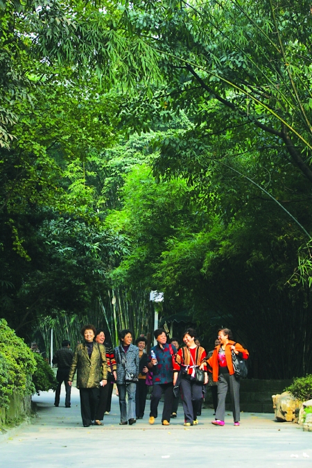 ●鴻恩寺公園:作為全國規模最大的桂花公園,廣植桂花、銀杏、紫薇、桃樹等觀賞三萬余棵,其中以桂花為主,各種桂花超過一萬株,聚集了金桂、銀桂、丹桂、四季桂四大類共60多個桂花品種,為全國桂花園林之最。公園占地1100畝,是主城區已建公園中最大的,突出生態、健身主題,精心打造了十二大園林景觀。車庫和公廁房頂都是綠樹成林,十分生態,是“森林重慶”建設的重要項目。