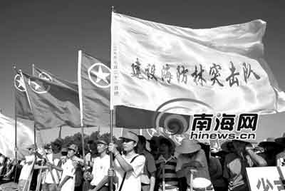 圖為兩年前由海口市數千名干部、群眾、武警和學生組成的植樹大軍在海口東海岸宣誓營造海防林。 本報記者 王凱 攝