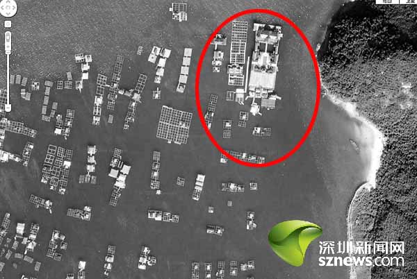 “海上皇宮”(圓圈中)在google衛星圖上也能看得清楚。