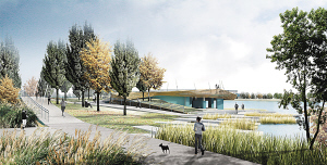 新塘湖公園位于塘沽西部新城,總面積約67萬平方米,包括東、西兩湖。目前,正在施工的是東湖工程,東湖總面積約為46萬平方米,其中水域面積約17.2萬平方米 ,沿湖周邊分布了大小各異的15座生態(tài)島,園區(qū)內(nèi)綠化面積11萬平方米。東湖公園周圍還布置七處臨水垂釣區(qū)及健身區(qū),供游人娛樂。湖的周圍規(guī)劃分布四座外形各異的水上休息亭,供市民休憩乘涼。面積達(dá)7850平方米的市民廣場將成為整個(gè)公園的中心景區(qū),廣場中心的觀景廊橋設(shè)計(jì)前衛(wèi),外觀獨(dú)特,可直接深入湖心,與湖心小亭相連,讓人置身湖面,享受微風(fēng)拂面。市民廣場周邊還將分布兩處景觀棧橋和沿湖親水區(qū),市民廣場的外圍湖面上,還將建設(shè)兩處湖中觀景平臺(tái)。在新塘湖的東側(cè)區(qū)域,規(guī)劃建設(shè)兒童娛樂場、街頭運(yùn)動(dòng)場、健身活動(dòng)場、體育運(yùn)動(dòng)場等各種功能性場地。