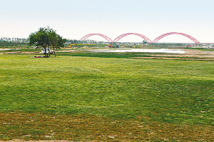 天津濱海新區北塘區域迎賓島綠化工程基本完成