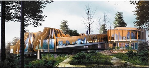 據(jù)了解,位于東興區(qū)東桐路圓頂山、西林寺西側(cè)的張大千博物館,由世博會(huì)西班牙館的設(shè)計(jì)團(tuán)隊(duì)——西班牙EMBT建筑事務(wù)所設(shè)計(jì),這不僅代表了張大千與畢加索珍貴友誼的延續(xù),也是世界著名建筑事務(wù)所首次設(shè)計(jì)我市城市的標(biāo)志性建筑。設(shè)計(jì)師以“糅合東西方文化精華”和“建世界一流博物館”為設(shè)計(jì)原則,建筑中既隱含張大千作品中最具特征的飛天和中國(guó)傳統(tǒng)的葫蘆造型,又遵循畢加索自畫像的框架布局。整個(gè)建筑群位于圓頂山山頂,在樹林中若隱若現(xiàn),遠(yuǎn)觀似山,近看是建筑。整個(gè)博物館造型新穎而獨(dú)特,并與西林公園完美地融于一體,給人一種創(chuàng)新設(shè)計(jì)的視覺沖擊。