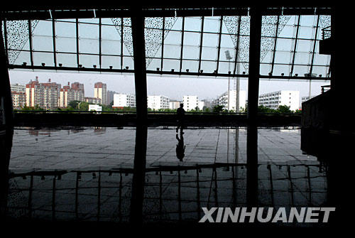 圖為一名工作人員從沈陽奧體中心五里河體育場的二層通道區內走過(攝于7月22日)。 新華社記者謝環馳攝