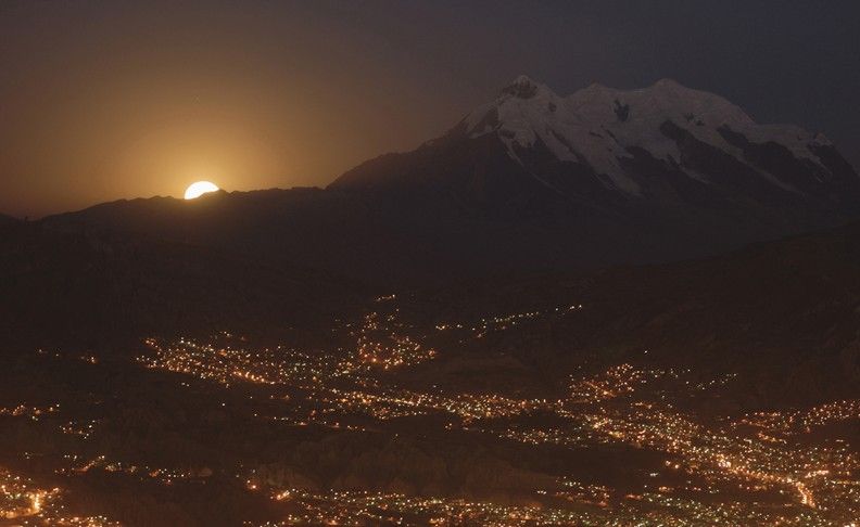 恰卡塔雅,玻利維亞。白雪皚皚的恰卡塔雅峰頂要高出玻利維亞首都拉巴斯許多,這座山峰的海拔高度在17800英尺(5425米)。恰卡塔雅冰川已經存在18000年之久,它融化的雪水是拉巴斯市居民重要的水源。但在過去的20年間,恰卡塔雅冰川在體積上銳減了80%。隨著全球氣溫的進一步上升,這座冰川最終將會完全消失。