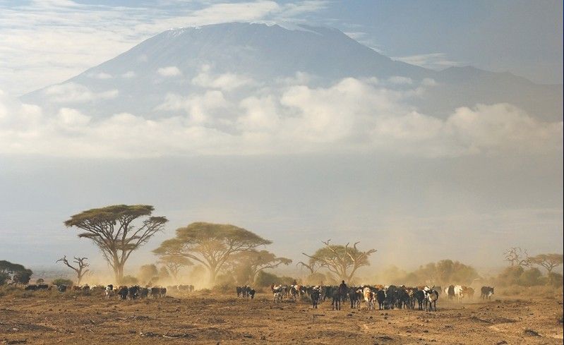 坦桑尼亞乞力馬扎羅山。在1912年至 2003年期間,乞力馬扎羅山喪失了約五分之四的冰原,山頂其余積雪有可能在十年內消失。由于氣溫上升,沿著山坡,澆灌森林、供養河流的厚厚的云層已經減少。森林火災也不斷增加。