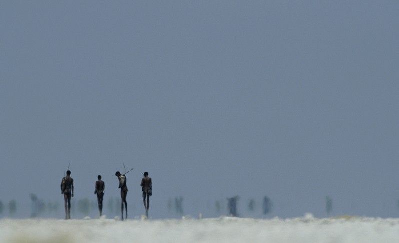 納米比亞喀拉哈里沙漠。在南非喀拉哈里沙漠惡劣的氣候條件下,San人總是在遷徙,尋找野生水果、漿果和堅果,追隨水源和狩獵。人口曾經達到數百萬的San人,只有不到兩千人仍以傳統的狩獵和采摘為生。他們的古老灌叢林地正受到牧場主和干旱的威脅。