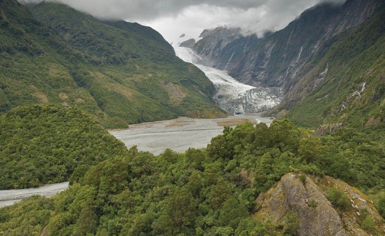 新西蘭,約瑟夫冰川。約瑟夫冰川被公認為是新西蘭西部海岸上的一顆明珠。它位于溫度適宜的熱帶雨林區(qū),海拔從11,500到790英尺不等,山上的冰川融水直接注入外后(WaiHou)河。但是它從2000年水量開始變得越來越小,專家預測下個世紀它將完全消失在人們的視野。