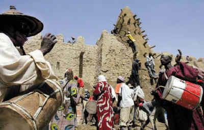 廷巴克圖曾被教科文組織列入瀕危名單,但當局采取恰當保護措施后,于2005年被排除。但是廣泛存在的社會問題,依然威脅著這個古代遺址。按照傳統,當地人用特殊手藝刷新表面,用土磚修復缺口。但隨著當地的現代化,年輕人不再夢想成為這種手藝人,傳統工藝也在隨之消失。這里的建筑已經非常危險,但不知道誰來保護它們。