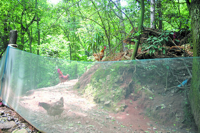在知新村往北的山坡上,由空心水泥磚和石棉瓦搭建的簡易房子還沒完工,房上掛滿了紅紅綠綠的衣服。在赫石南村附近,一處建筑正在施工,明顯可以看出地基是從岳麓山體上挖出來的。知情人告訴記者,沿路一些緊貼山體的簡易屋,多半可以確定是違章建筑。記者還看到有兩處養雞場地,用網圍起來,養雞場內還依山而建大批雞舍。