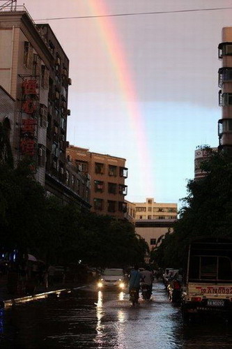 2010年7月19日,當(dāng)日是今年農(nóng)歷24節(jié)氣中進(jìn)入三伏天氣的第一天,這意味著一年中氣溫最高最為潮悶的時期到了。然而,頭伏天里一場暴雨卻給海口的市民們帶來的陣陣的涼爽。雨后的天空更是雙虹高掛,美輪美奐。