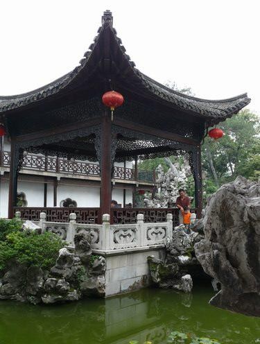 西園樓臺極富層次感,低層有池中的水心亭;中層有蝴蝶廳、桂花廳、望月樓;高層還有山石凌空。主體建筑蝴蝶廳是一座兩層樓房,中間三間稍微突出,兩側兩間稍斂,屋頂四角翹起,猶如蝴蝶振翅起舞。
