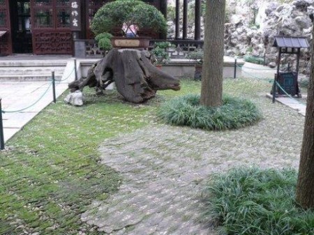 更有意思的是,東園牡丹廳是一座船廳,廳下以鵝卵石和小瓦片鋪成波浪紋,起伏有致,船廳的楹聯“月作主人梅作客,花為四壁船為家”,更有畫龍點睛的效果,令人不得不佩服設計者的巧思與創意。