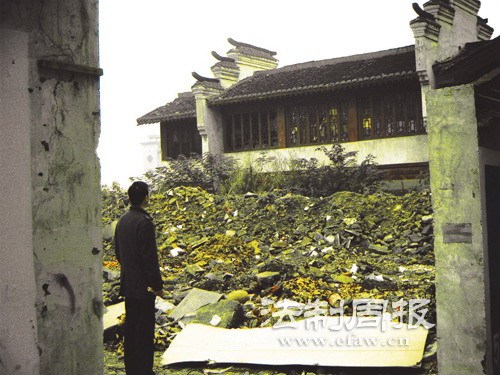 租戶搬走后,在半年多的時間內,門面的屋檐、墻壁、窗戶,被不知名的人毀壞。緊接著,門面內被斷水斷電。2007年,岳陽市相關職能部門以衛生大檢查為由,被拆門面影響岳陽樓整體效果,而將門面砌墻封堵。