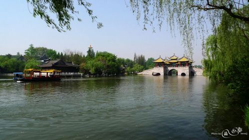 杭州有西湖,揚州有瘦西湖,鎮江有金山,揚州就有小金山。小金山是瘦西湖中最大的島嶼,也是湖上建筑最密集的地方。看南方的看門獅子,不似北方的莊重威嚴,很是俏皮可愛。深入湖心的釣魚臺,原來是演奏絲樂器的地方,相傳當年的乾隆皇帝曾來此釣魚。這是個挺有特色的亭子,造型超贊,三個孔洞的“框景”設計是很有名的。